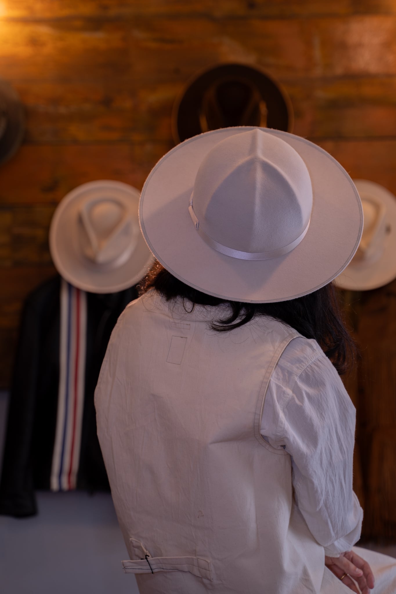 ラビットフェルトを使用し、リボン、スベリに至るまで細部にこだわり製作し、オリジナルの裏地もついたモデルです。