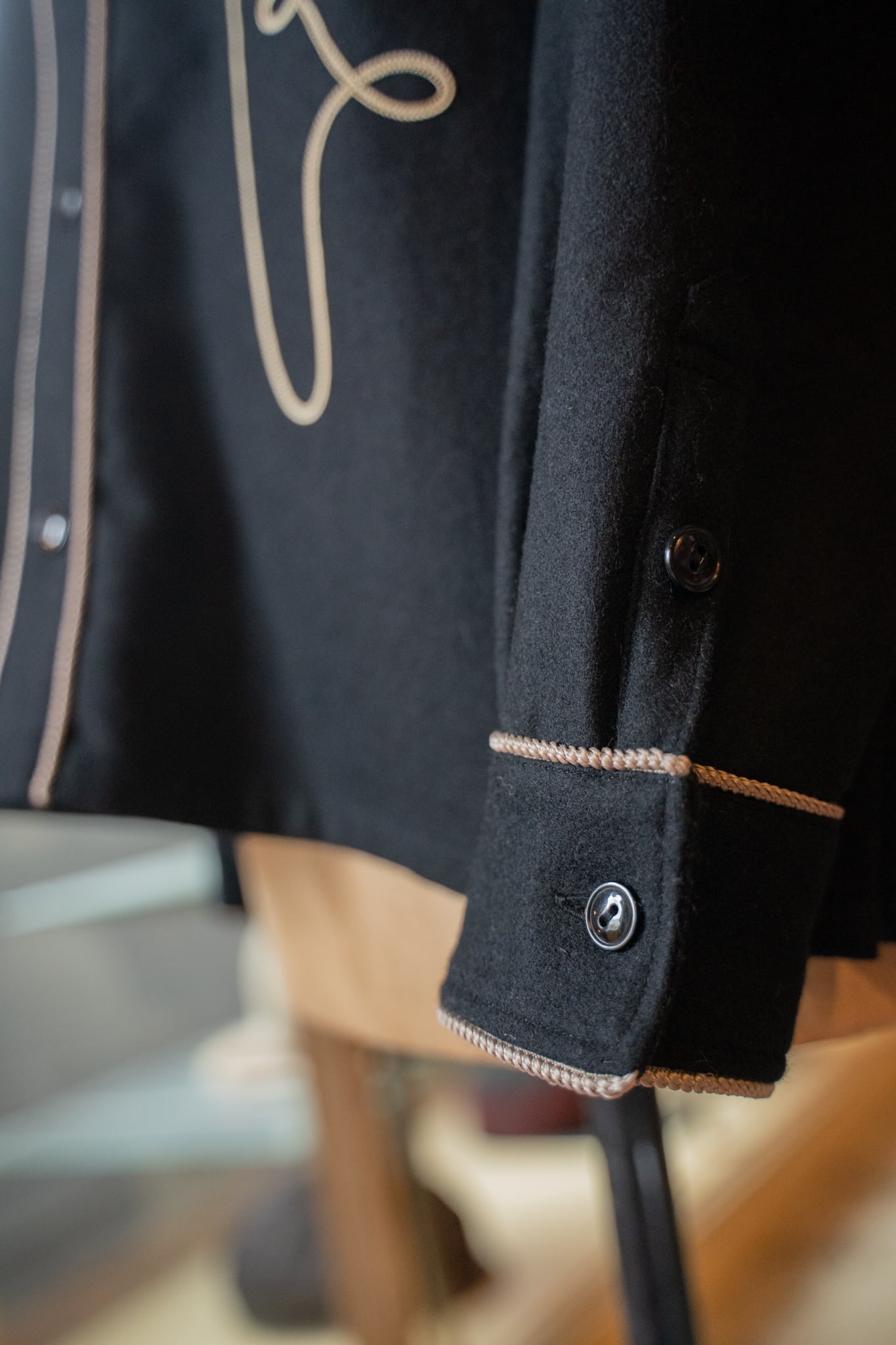 起毛感のあるウールにコード刺繍がアイコニックな1着。