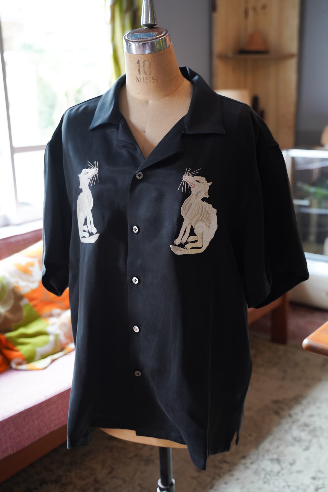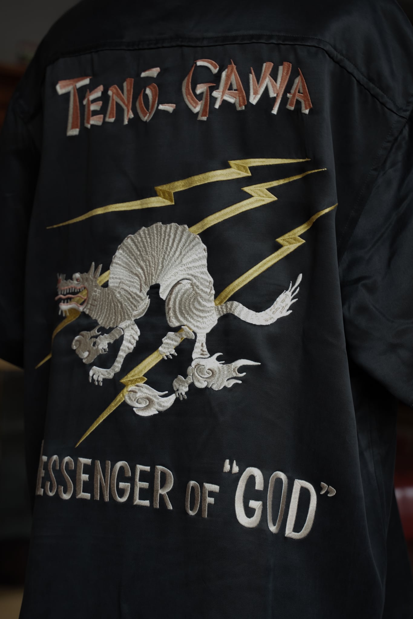 刺繍は神話の世界の”神の使い”である『白狼』をモチーフにしています。